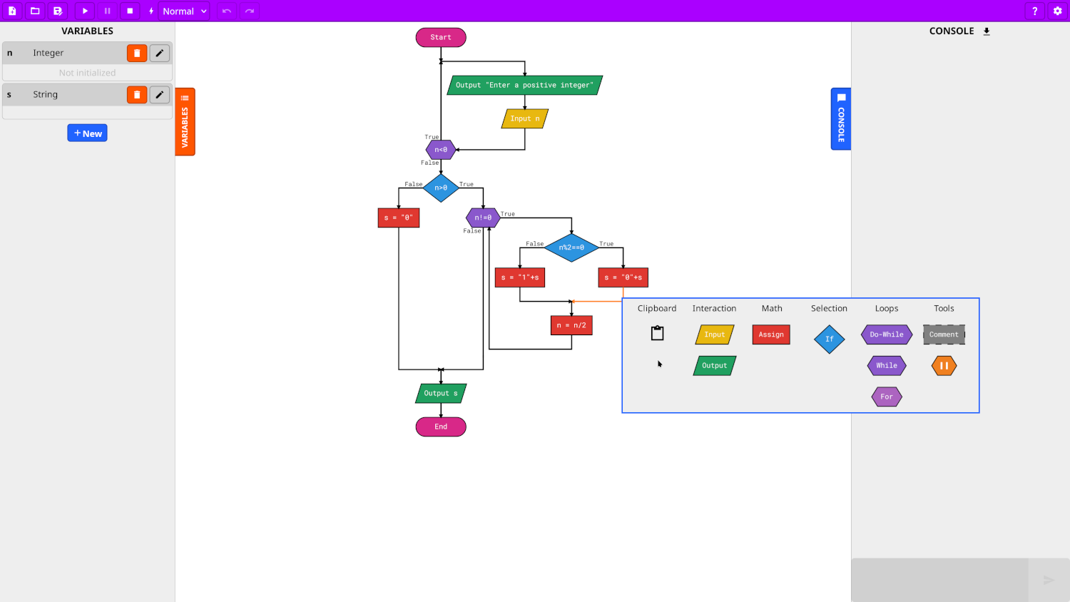 - Chat-like Input/Output UI, similar to Flowgorithm